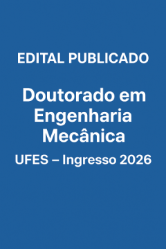 O PPGEM/UFES convida interessadas e interessados a participarem do Processo Seletivo para o Doutorado 2026, conforme Edital 009/2025.